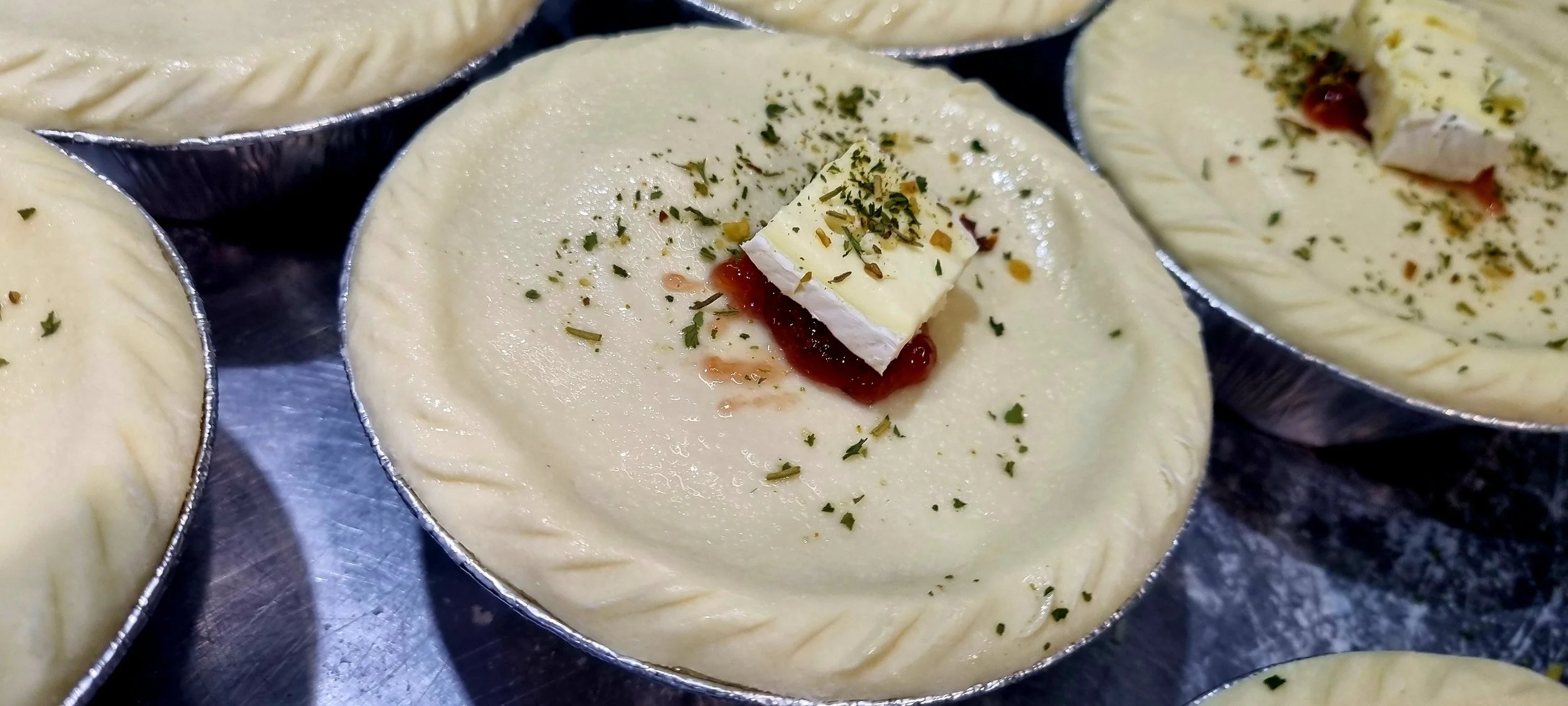 This is our organic chicken, Tasmanian brie and Canadian cranberry pie.